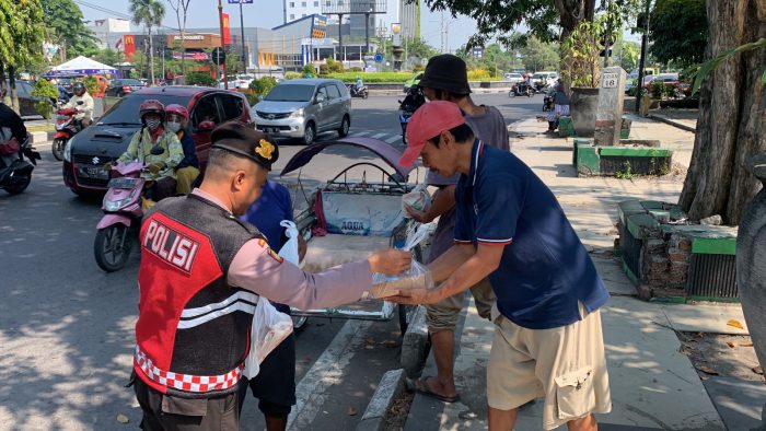 Di tengah melaksanakan patroli kamtibmas, Rabu (31/5/2023), anggota Sat Samapta Polresta Sidoarjo memiliki rasa kepedulian terhadap sesama. Yakni warga kurang mampu, tukang becak, petugas kebersihan jalan raya dan sebagainya.