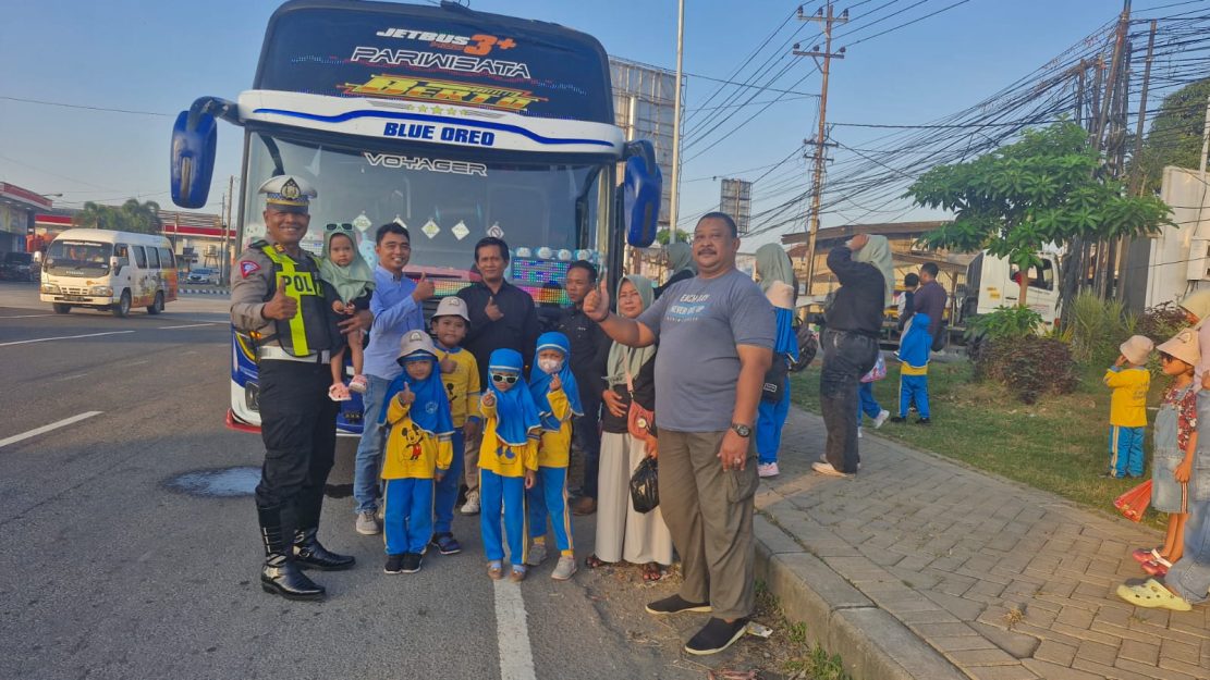 Peduli Keselamatan, Polisi Datangi Rombongan Bus TK Sawotratap