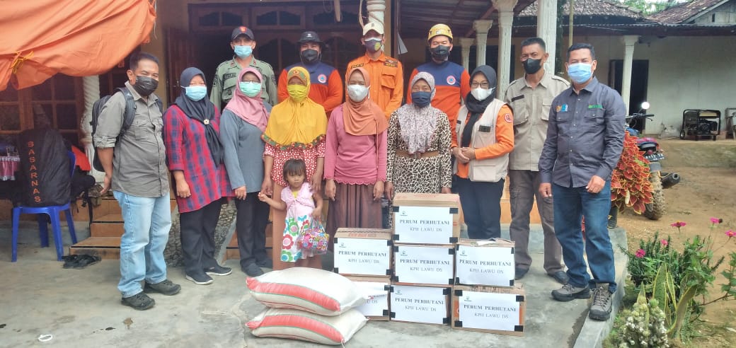 Perhutani Kesatuan Pemangkuan Hutan (KPH) Lawu Ds menyerahkan bantuan untuk korban bencana tanah longsor berupa mie instan sebanyak 3 dus, Minyak Goreng 1 dus, Krupuk Udang 12 pack, Susu kaleng kental Manis 12 Kaleng, Susu Furmula 4 Dus dan Beras 50 Kg, bertempat di Posko pengungsian, Desa Tugurejo, Kecamatan Slahung, Kabupaten Ponorogo, Kamis (25/11).
