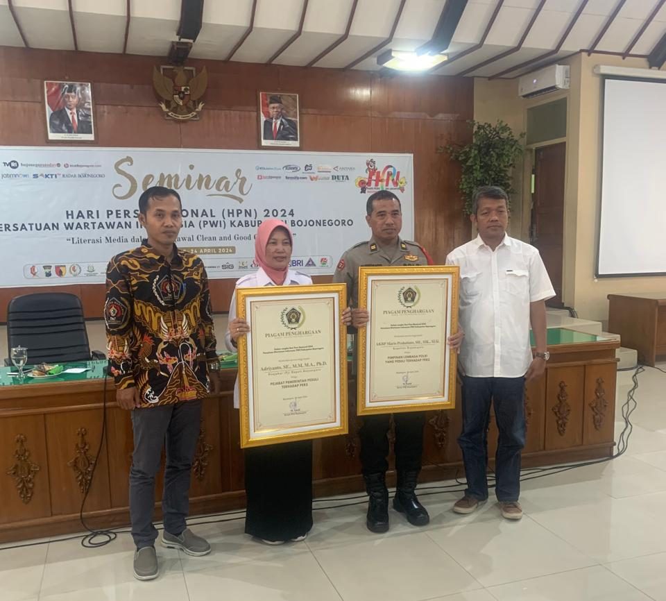 Memperingati Hari Pers Nasional (HPN) Tahun 2024, Persatuan Wartawan Indonesia (PWI) Kabupaten Bojonegoro menyeleggarakan seminar dengan tema “ Literasi Media dalam Mengawal Clean and Good Governance ” di Ruang Angling Dharma Pemerintah Kabupaten (Pemkab) Bojonegoro, Rabu (24/4/2024).