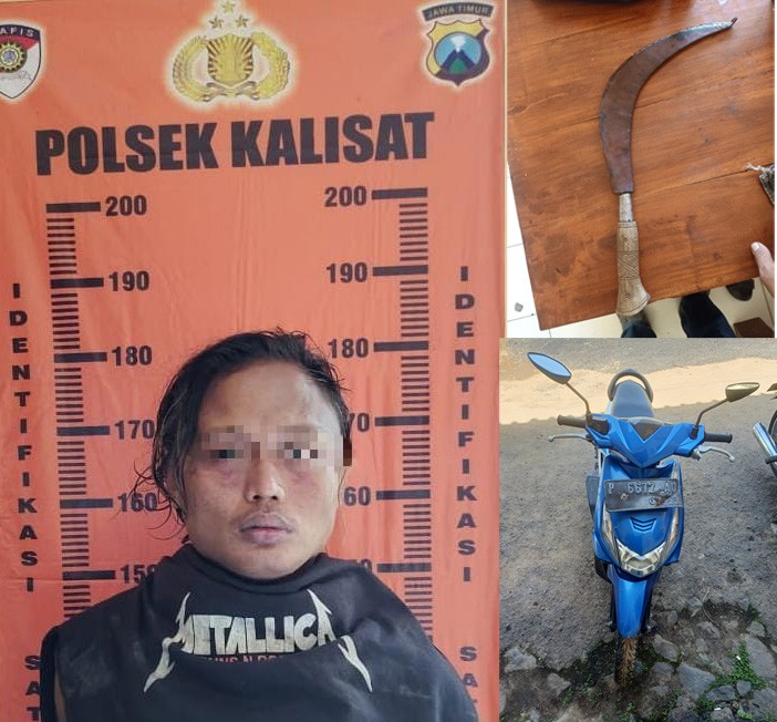 Selanjutnya kedua pelaku melarikan diri meninggalkan TKP dan meninggalkan kendaraannya, pada saat itu Anggota Polsek Kalisat yang sedang melakukan patroli mengetahui kejadian tersebut dan langsung melakukan pengejaran bersama warga sehingga berhasil menangkap RA yang didapati membawa senjata tajam berupa clurit yang diselipkan dipinggangnya, sedangkan 1 orang tersangka atas nama ENG berhasil melarikan diri (DPO)