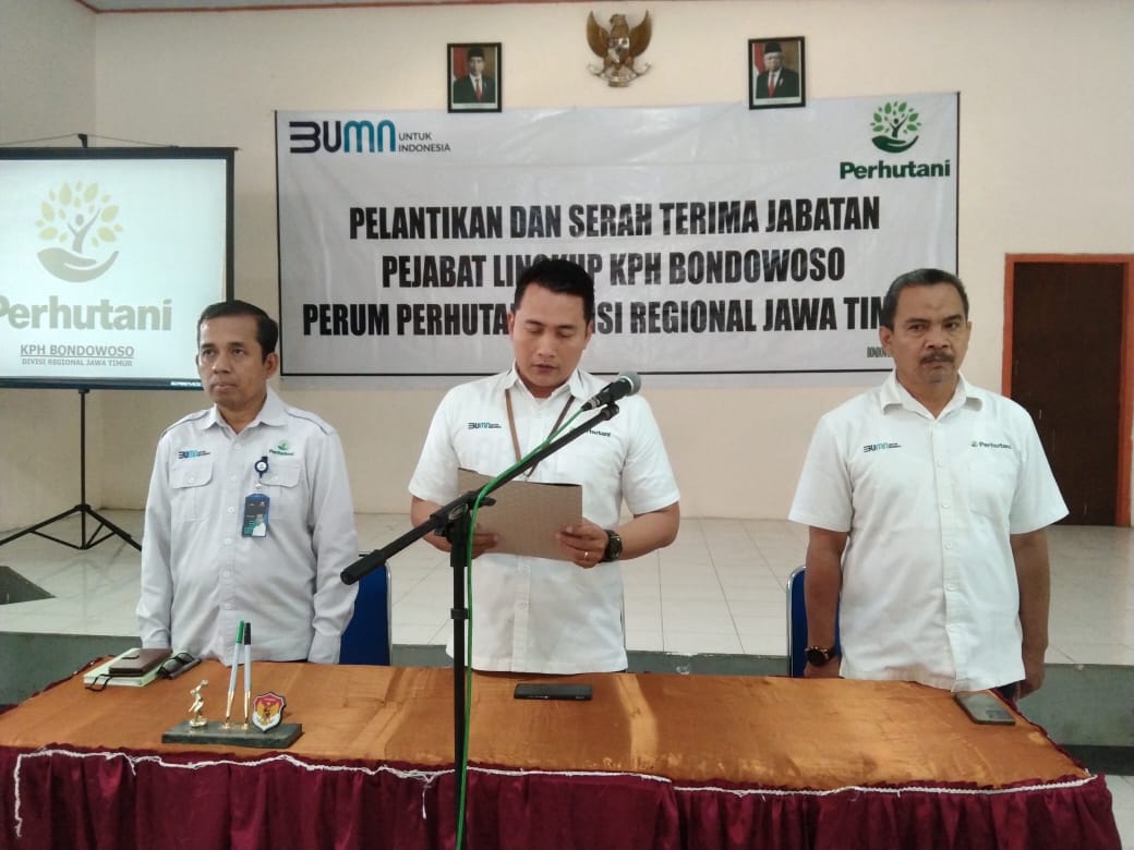 Tiga bulan menjelang berakhirnya karya Bhakti tahun 2023 dan guna mengisi kekosongan dibeberapa wilayah, Rabu 20/09/23 Ir. Ronny Merdyanto S.Hut Administratur Perum Perhutani KPH Bondowoso melantik dan mengambil sumpah kepada lima orang pejabat baru diantaranya Octavano SV sebagai Kepala Sub Seksi (Kasubsi) Pengembangan Bisnis, Sunaryo Aryadi sebagai Kasubsi Agro dan Wisata, Suparman sebagai Kepala Resort Pemangkuan Hutan (KRPH) Wringin – Besuki, Hendro karyawan sebagai KRPH Sumber Malang – Besuki dan Imam rofi’i sebagai KRPH Tegalampel – Klabang.
