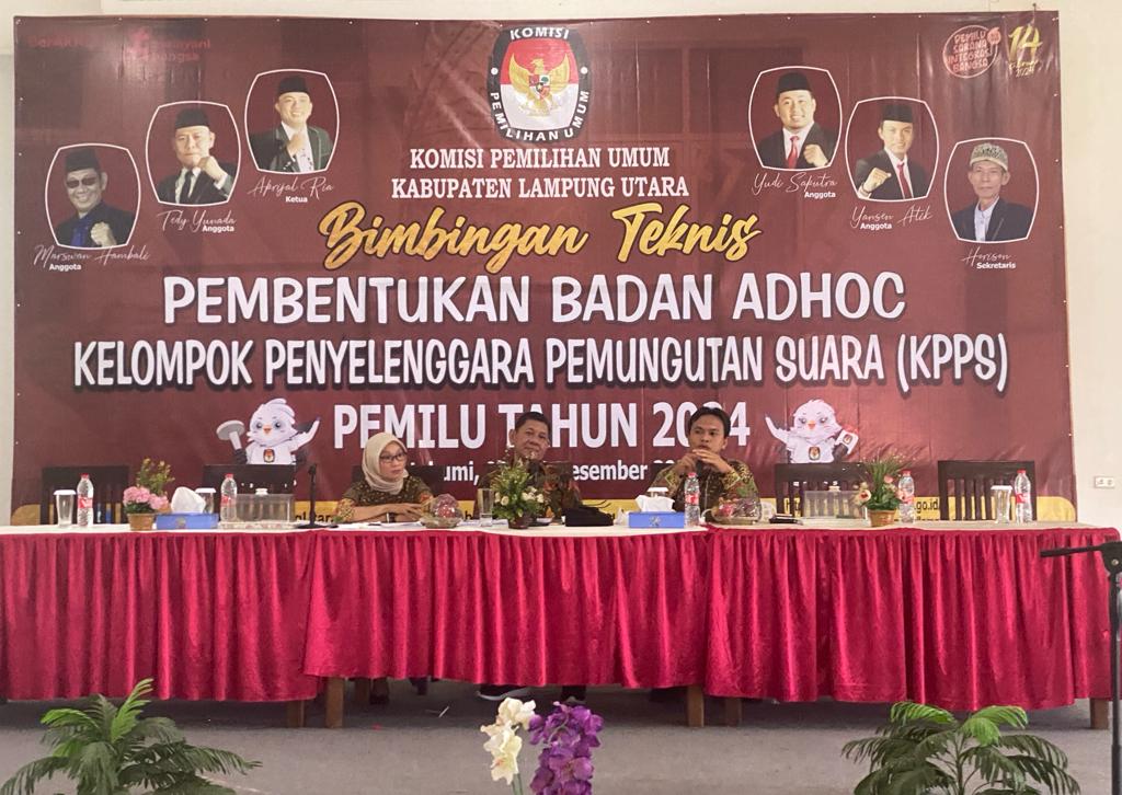 Hal itu diucapkan Devisi Sosdiklih, Parmas dan SDM Marswan Hambali saat menjadi narasumber dalam kegiatan Bimbingan Teknis Penguatan Kapasitas Badan Adhoc dan Persiapan pembentukan KPPS untuk pemilihan umum tahun 2024 bagi PPK dan PPS Se Kabupaten Lampung Utara. Di gelar di Hotel Graha Wisata. Jum’at,(08/12/2023).