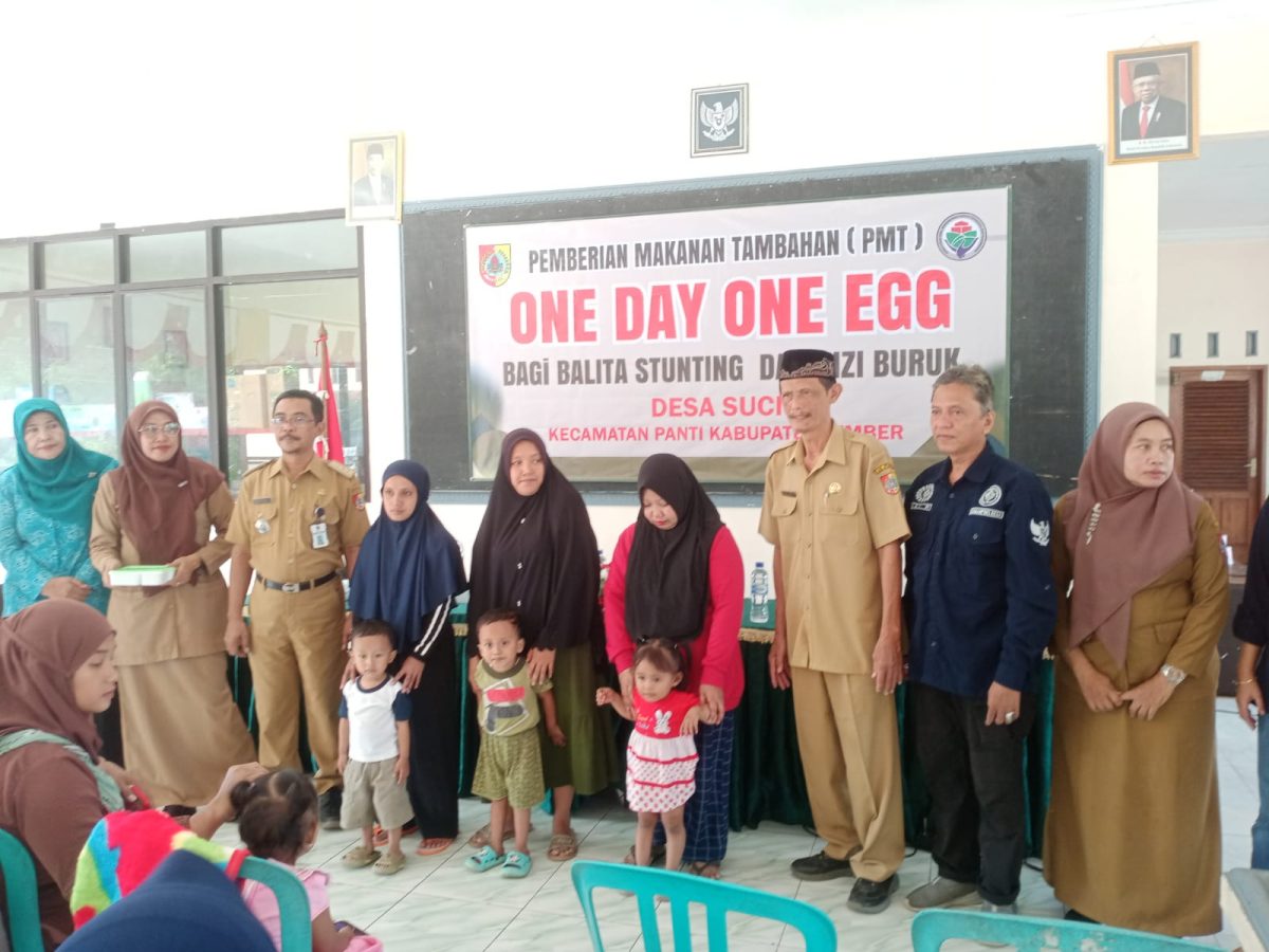 Pemerintahan desa Suci kecamatan Panti kabupaten Jember Melaksanakan program One Day One Egg, program ini untuk menangani dan mengurangi balita Stunting dan Gizi buruk di desa Suci, acara dilaksanakan pada hari senin (8/7/2024) bertempat di kantor desa Suci yang dihadiri Camat Panti beserta ketua Pkk kecamatan panti.