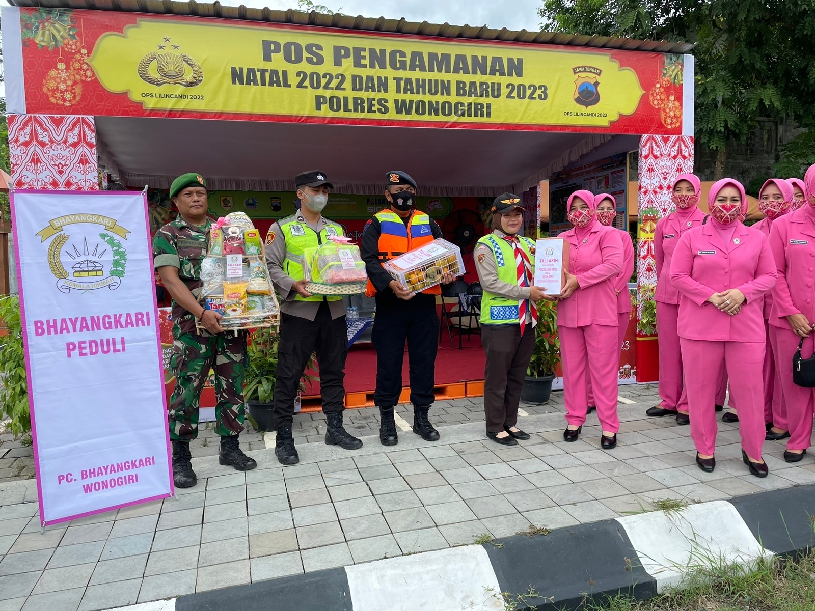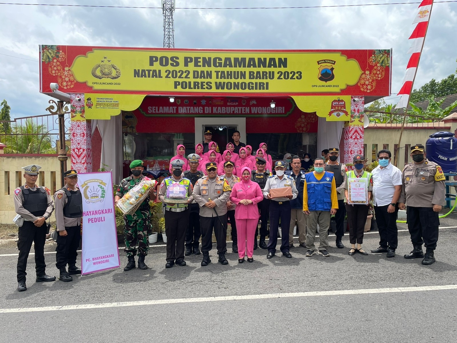 Pemberian Tali Asih oleh Bhayangkari Cabang Wonogiri ke Pos Pengamanan Nataru 2023