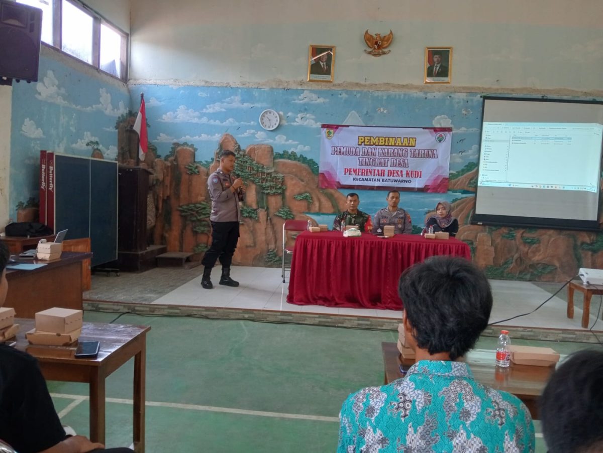 Polsek Batuwarno menggelar pembinaan kepada Karang Taruna Desa Kudi, Minggu (7/12/2025), bertempat di Gedung Pertemuan Desa Kudi. Kegiatan berlangsung sejak pukul 09.00 WIB dan dihadiri 22 peserta dari unsur pemuda setempat.