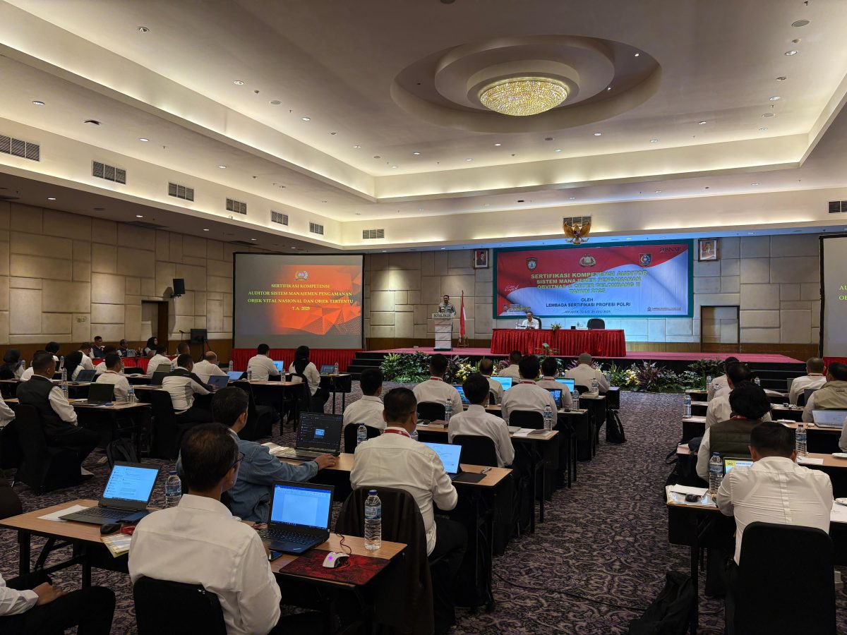 Kegiatan pembukaan Sertifikasi Kompetensi Auditor Sistem Manajemen Pengamanan Objek Vital Nasional (SMP Obvitnas) dan Objek Tertentu (Obter) Gelombang II Tahun Anggaran 2025 telah sukses diselenggarakan pada hari Selasa, 22 Juli 2025.