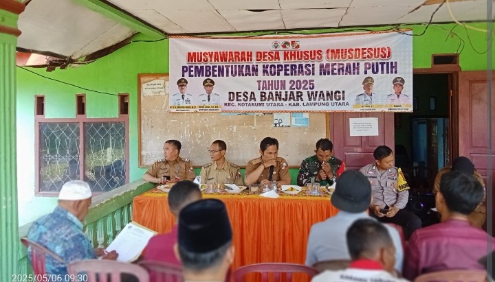 Pemerintah Desa Banjar Wangi kecamatan kotabumi utara melaksanakan Musyawarah Desa khusus (Musdesaus) di kantor desa, Selasa 06 Mei 2025.