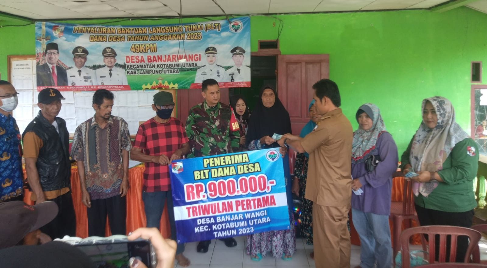 Pemerintah Desa ( Pemdes ) Banjar Wangi, Kecamatan Kotabumi Utara, Kabupaten Lampung Utara, Gelar Pembagian Bantuan Langsung Tunai BLT DD Triwulan pertama bersumber dari Dana Desa Tahun 2023.
