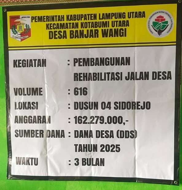 Sementara itu, Camat Kotabumi Utara, Yhoha, yang diwakili sekcam kotabumi utara, Ludi, Mengapresiasi Kepada Kepala Desa Banjar wangi, atas Pembangunan Fisik Tahun 2025 Telah Rampung Dilaksanakan Dan Direalisasikan.