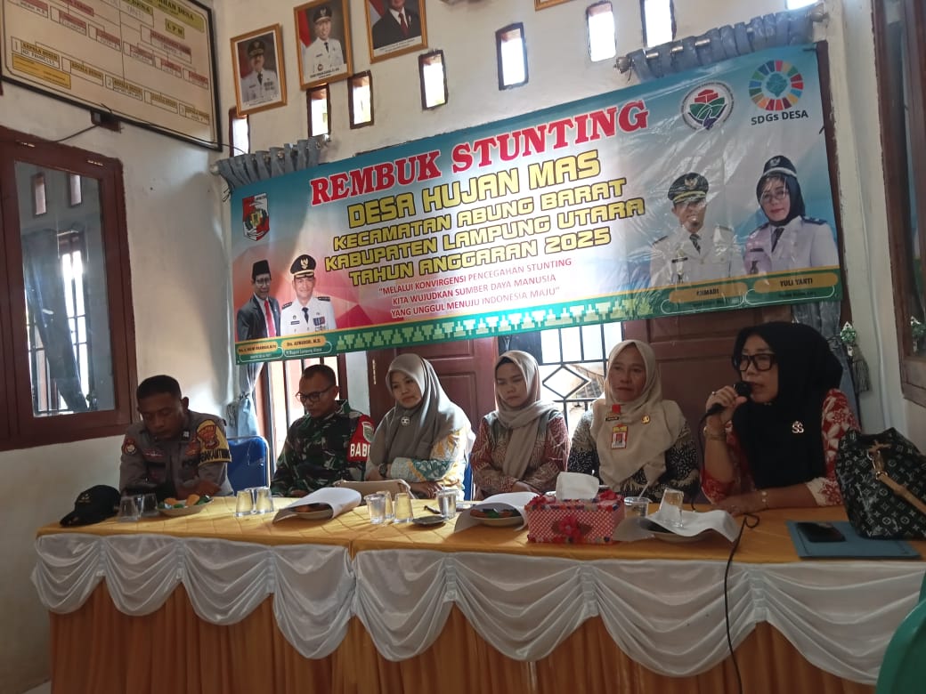 Pemerintah Desa Hujan Mas, Kecamatan Abung Barat, Kabupaten Lampung Utara, menyelenggarakan kegiatan Rembuk Stunting sebagai bagian dari implementasi aksi konvergensi percepatan penurunan stunting di tingkat desa.