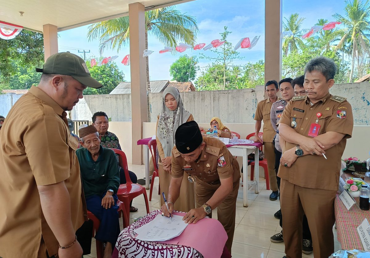 Pemerintah Desa Sri Agung Gelar Acara Setah Terima Pekerjaan Pembangunan Jalan Lapen yang Berlokasi di Dusun 3 RT 1 Dan Dusun 2 RT 2 Tahun Anggaran 2024 Desa Sri Agung, Di Kantor Desa Sri Agung Kecamatan Sungkai Jaya Kabupaten Lampung Utara, Selasa 27 Agustus 2024.
