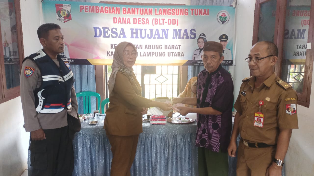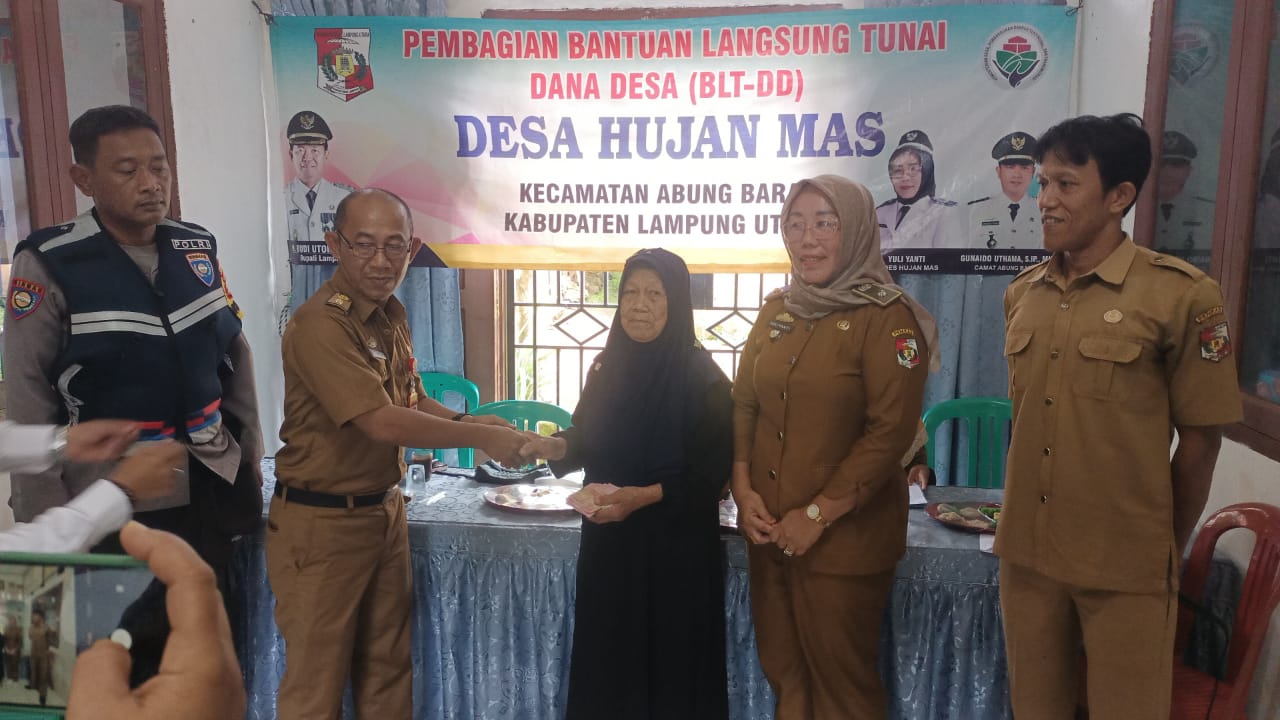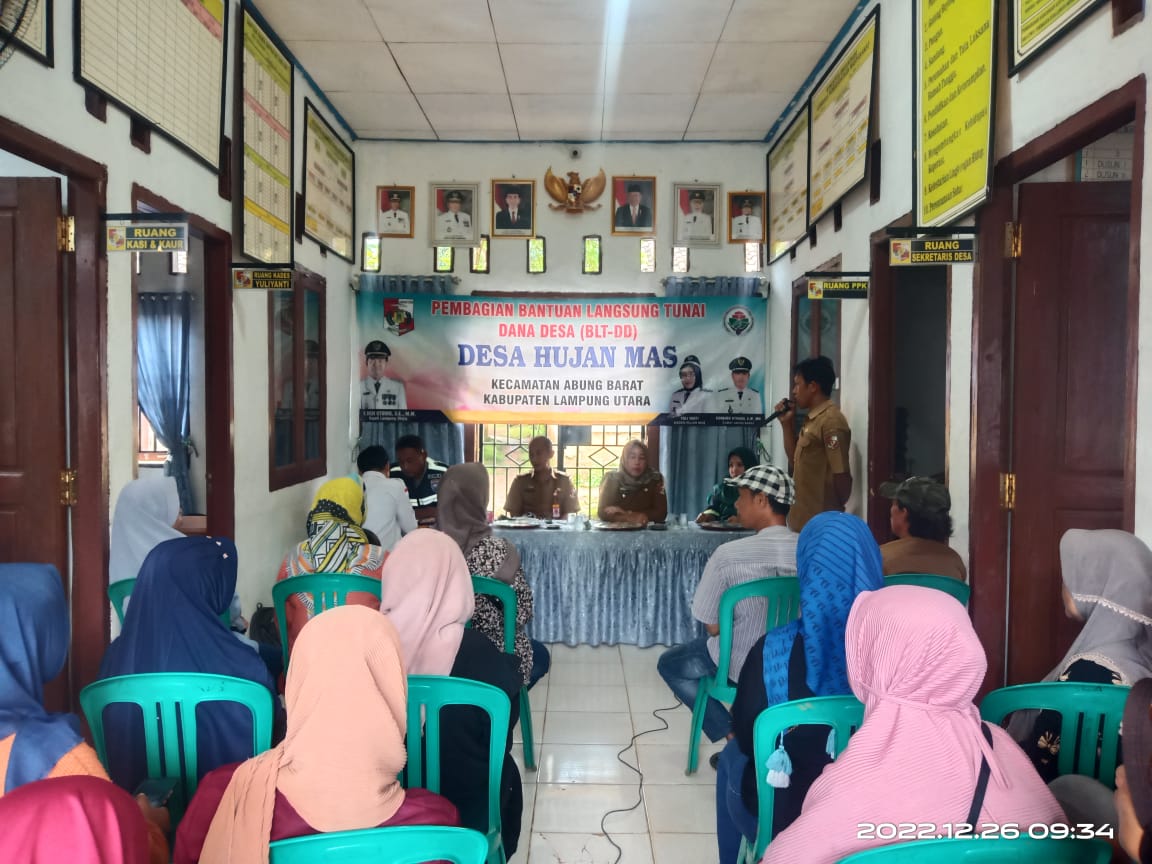 Pemerintah Desa ( Pemdes) Ujan Mas, Kecamatan Abung Barat, Kabupaten Lampung Utara, salurkan Bantuan Langsung Tunai (BLT) Dana Desa tahun anggaran 2022, Senin (26/12/2022).
