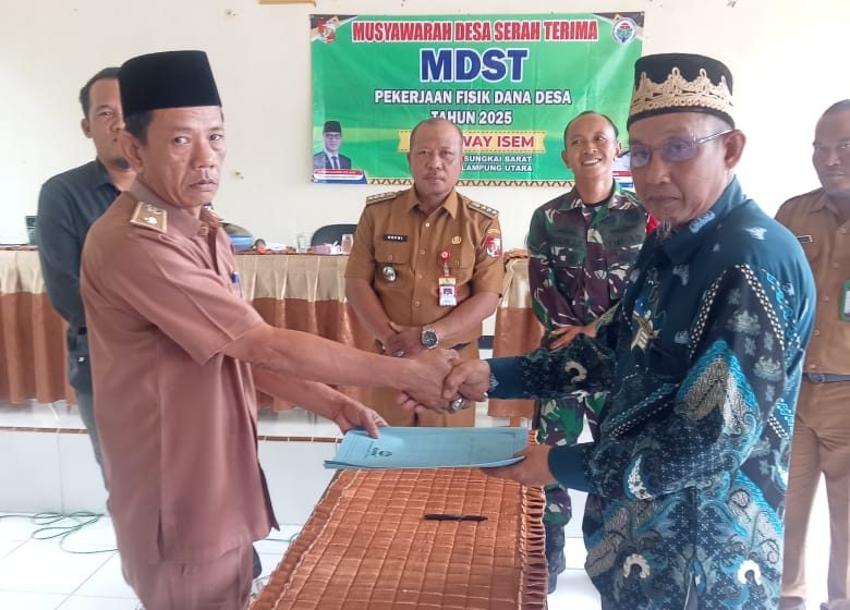 Pemerintah Desa (Pemdes) Way Isem, Kecamatan Sungkai Barat, Kabupaten Lampung Utara, menggelar Musyawarah Desa Serah Terima Hasil Pekerjaan (MDST) Pembangunan Fisik Tahun Anggaran 2025. Kegiatan tersebut dilaksanakan di Kantor Desa Way Isem pada Senin, 13 Oktober 2025.
