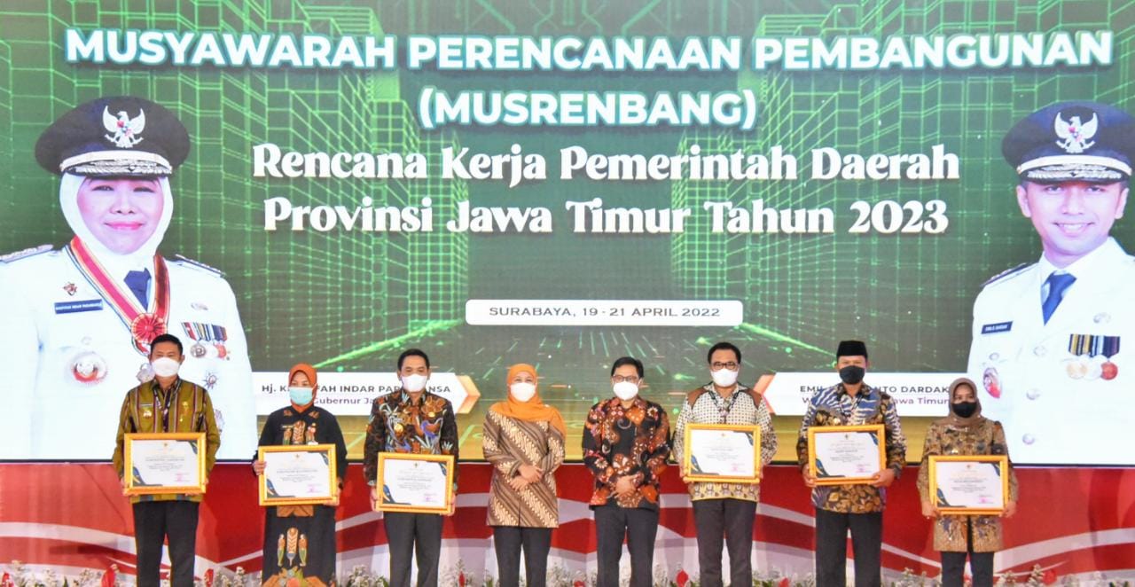 Penyerahan Penghargaan ini diberikan bertepatan dalam pelaksanaan kegiatan Musrenbang Provinsi Jawa Timur Tahun 2023 yang turut dihadiri oleh Dirjen Bangsa, Dirjen Perimbangan keuangan, Kementrian Keuangan, Deputi Pengembangan Bappenas, Kepala Bappeda seluruh Jawa Timur, dan Ketua DPRD Se- Provinsi Jawa Timur.
