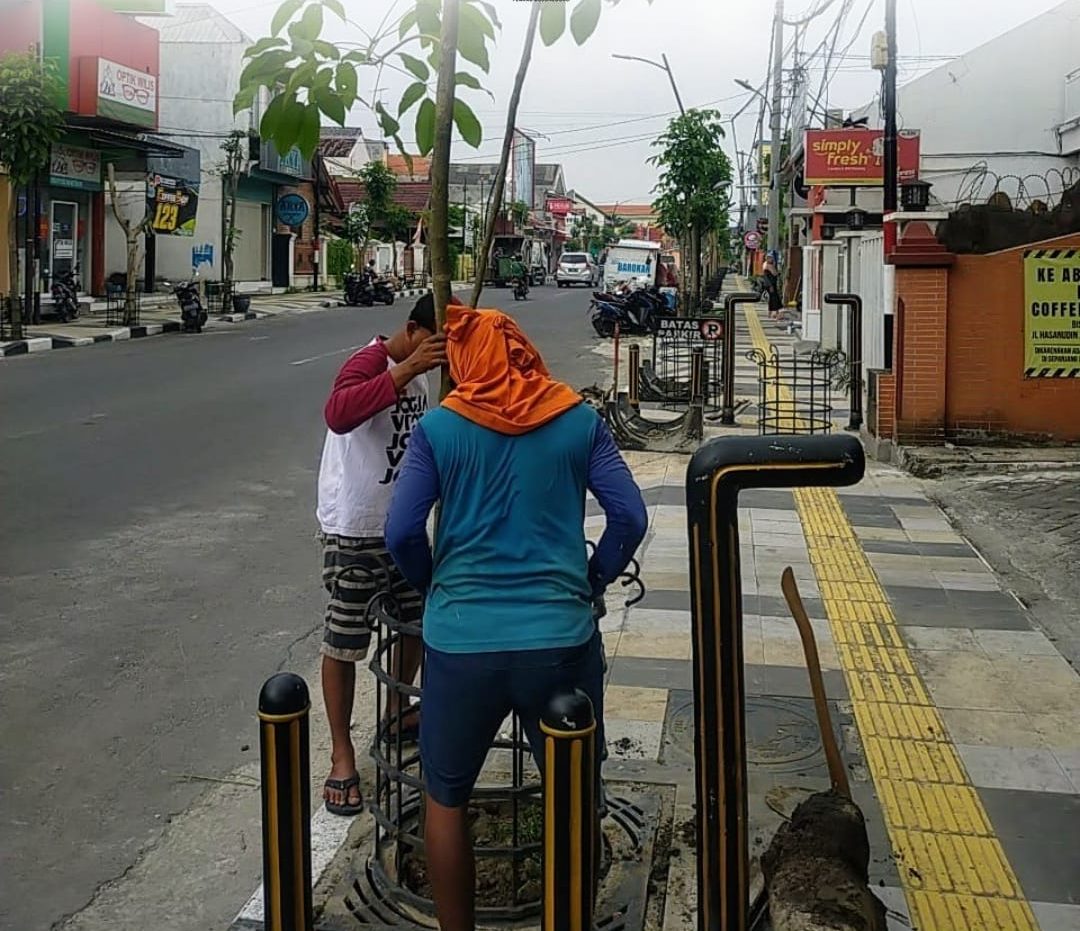 Pemerintah Kabupaten Bojonegoro melalui Dinas Perumahan Kawasan Permukiman dan Cipta Karya menangani langsung terkait pohon kering dalam masa pengerjaan 12 titik trotoar di 2022. Jumat (17/3/2023) pergantian pohon sudah mulai di titik pertama yaitu Jalan Panglima Sudirman dan akan dilanjutkan di titik lainnya.