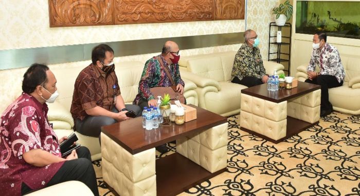 Bupati Lamongan, Yuhronur Efendi, menerima kunjungan dari Kepala Kantor Perwakilan Bank Indonesia (BI) Provinsi Jawa Timur, Budi Hanoto, beserta jajarannya di Ruang Pertemuan Bina Praja yang bersebelahan dengan Ruang Kerja Bupati, Kamis (23/9)