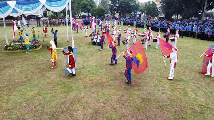 Atraksi dari grup marching band SMPN 1 Kotabumi dan paduan suara yang berasal dari SMP Xaverius Kotabumi