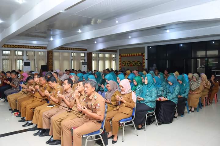 Bupati Lampura, Budi Utomo diwakili Sekda, Lekok didampingi Wakil Ketua TP-PKK Lampura, Hj. Devriyana Marda Ardian. S. Kom bersama Kepala Dinas Lingkungan Hidup setempat, Ina Sulistya Achyar membahas program Bank Sampah dan Adipura dihadapan para Kepala Perangkat Daerah, Kepala Sekolah (Kepsek), serta para pelaku UMKM se-Lampura.