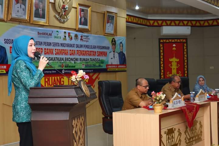 Pemerintah Kabupaten (Pemkab) Lampung Utara (Lampura) bersama Dinas Lingkungan Hidup Provinsi Lampung dan Metro menggelar sosialisasi Peningkatan Peran Serta Masyarakat Dalam Pengelolaan Persampahan Dengan Konsep Bank Sampah dan Pemanfaatan Sampah Dalam Meningkatkan Ekonomi Rumah Tangga yang dipusatkan di Ruang Tapis Setdakab setempat, Selasa, (05/03-2024).