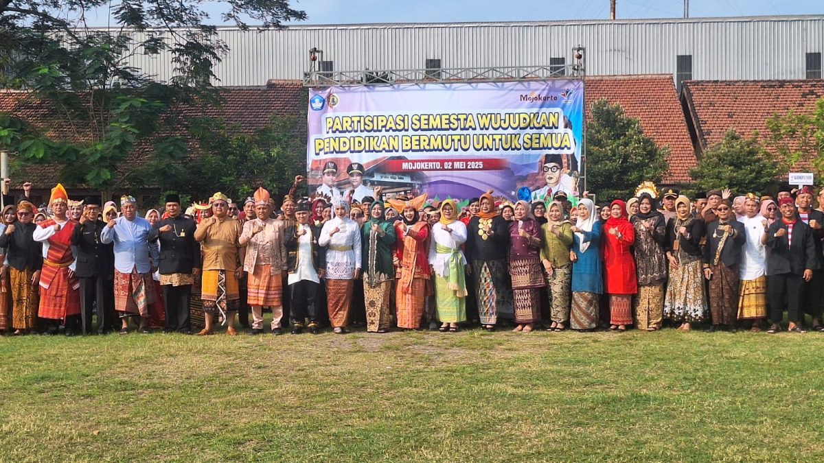 Dalam rangka memperingati Hari Pendidikan Nasional (Hardiknas), Pemerintah Kabupaten (Pemkab) Mojokerto melaksanakan upacara bendera, Jum’at, ( 02 /05 / 2025 ) pagi, di halaman SMP Negeri 2 Mojosari yang dihadiri oleh Bupati Mojokerto Dr .H Muhammad Al-Barra Didampingi Sekretaris Daerah Kabupaten Mojokerto Drs. Teguh Gunarko dan Kepala Dinas Pendidikan Kabupaten Mojokerto Ludfi Ariyono, AP. S.Sos, M. Si bersama Kepala Sekolah SMP Negeri 2 Mojosari Mojokerto Eka Wahyu Hidayati, S. Pd, M.Pd, dengan Tema Upacara, yakni : ” Partisipasi Semesta Wujudkan Pendidikan Bermutu Untuk Semua “