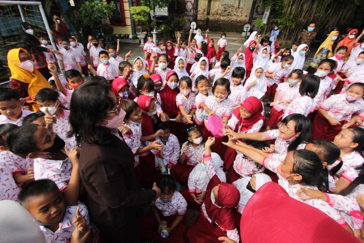 Ayu menyampaikan materi tentang gejala hepatitis misterius, cara penularan, dan upaya pencegahannya. Tak lupa, meminta para pelajar sekolah dasar itu segera melapor jika mengalami gejala mual, muntah, diare berat, dan kadang diserai demam.