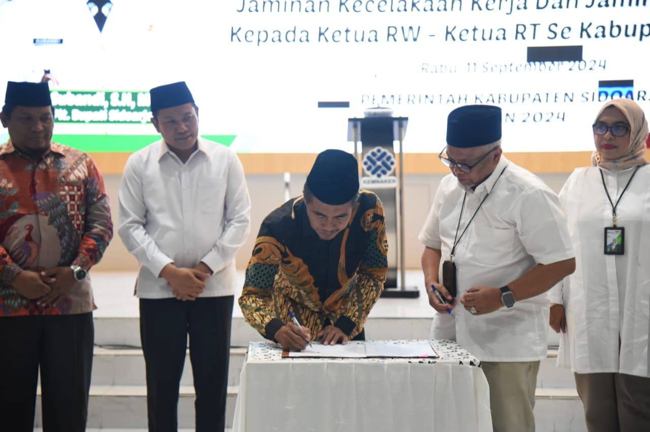 Pemerintah Kabupaten Sidoarjo resmi memberikan perlindungan jaminan sosial BPJS Ketenagakerjaan kepada seluruh ketua RT dan RW di wilayahnya. Sebanyak 10.931 orang, yang terdiri dari 8.848 ketua RT dan 2.083 ketua RW, kini terdaftar dalam program Jaminan Kecelakaan Kerja (JKK) dan Jaminan Kematian (JKM) BPJS Ketenagakerjaan. Pemkab Sidoarjo akan menanggung iuran program ini dari Oktober hingga Desember 2024.