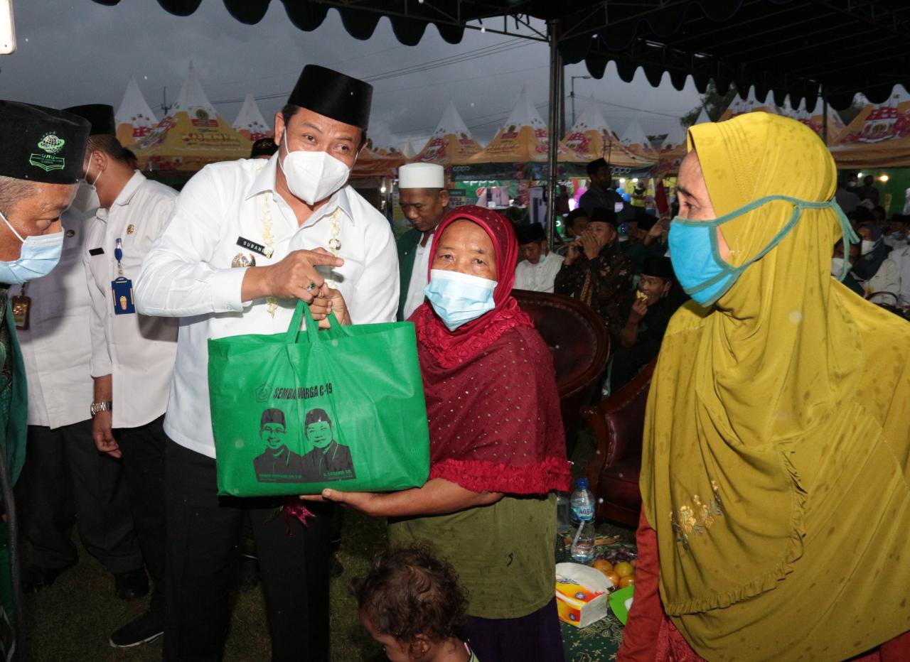 Wakil Bupati Sidoarjo H. Subandi SH dalam sambutannya saat membuka Gelar UMKM memperingati Maulid Nabi Muhammad SAW 1443 H di lapangan sepakbola Desa Wunut Kecamatan Porong, Kamis Sore, (5/11). Puluhan pelaku UMKM hadir meramaikan gelar UMKM yang diselenggarakan MWCNU Kecamatan Porong tersebut.