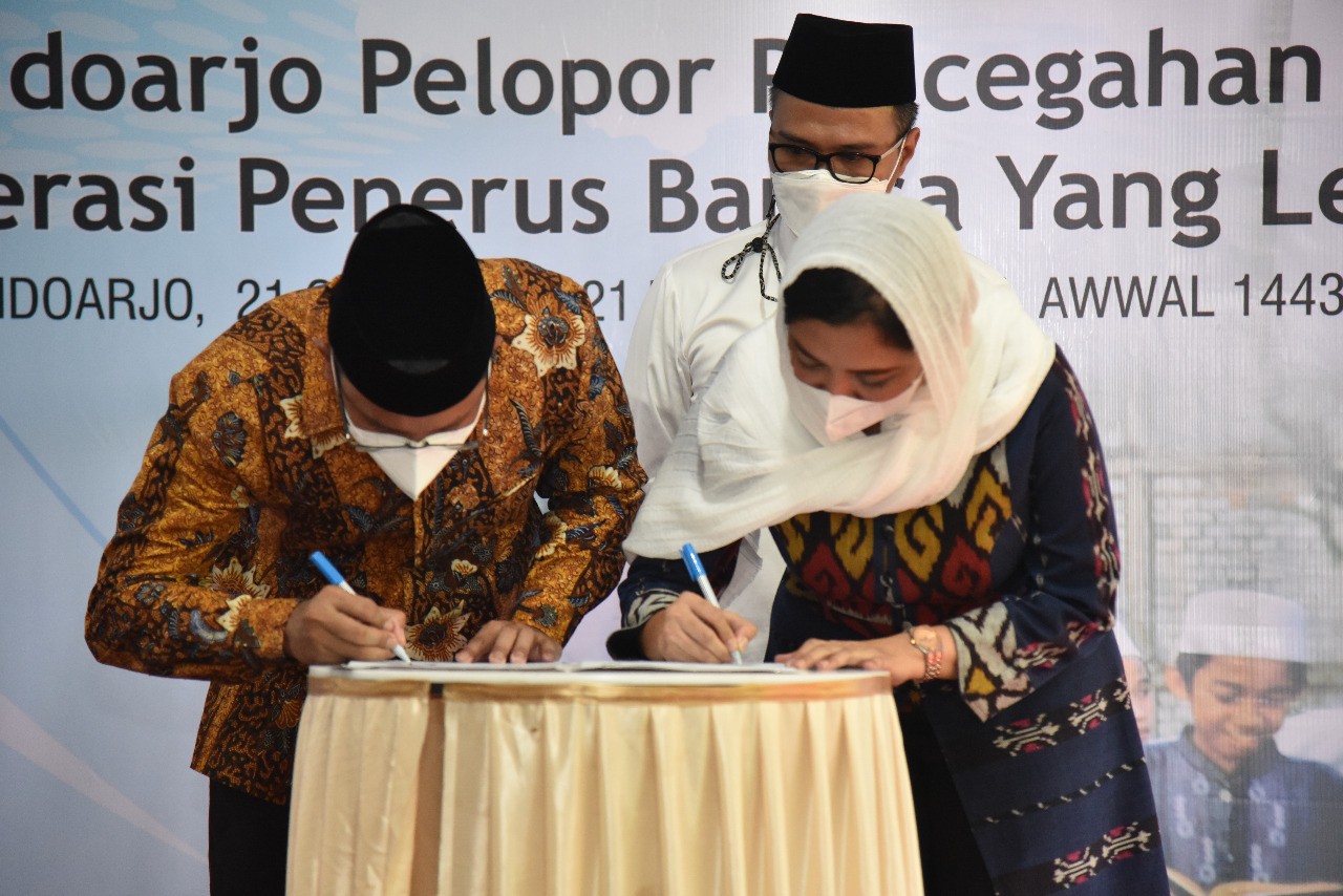 Diakhir kegiatan dilaksanakan penandatanganan komitmen bersama Pemerintah Kabupaten Sidoarjo dengan PT. Phapros tbk dalam Pencegahan Stunting di Kabupaten Sidoarjo dilanjutkan kegiatan seremonial minum vitamin bersama sebagai upaya mewujudkan hidup sehat bebas stunting di lingkungan Pondok Pesantren. (Ags/MW)