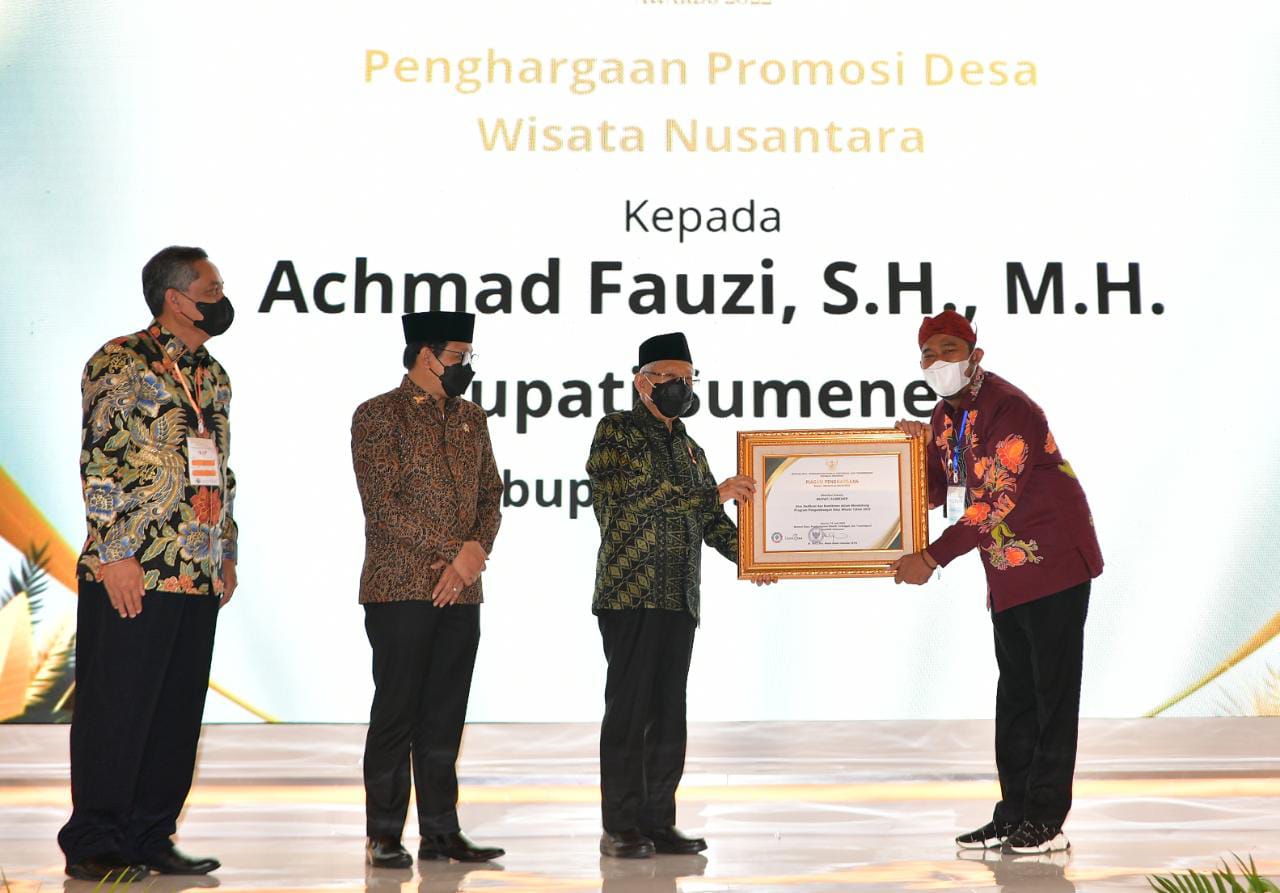 Kamis, ( 23/06/2022 ) Bupati Sumenep Ra Achmad Fauzi menerima penghargaan dari Kementerian Desa, Pembangunan Daerah Tertinggal dan Transmigrasi (PDTT) dalam perhelatan Desa Wisata 2022.