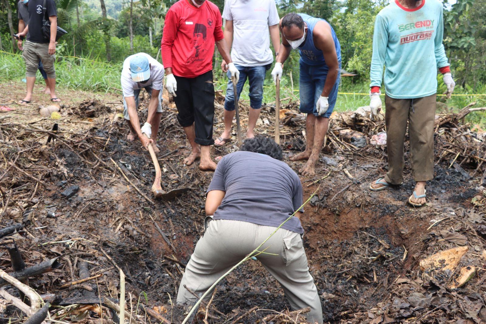 “Jadi untuk kerangka manusia ini ditemukan terkubur dibelakang rumah Sdr Spy dalam keadaan bekas terbakar” ucapnya