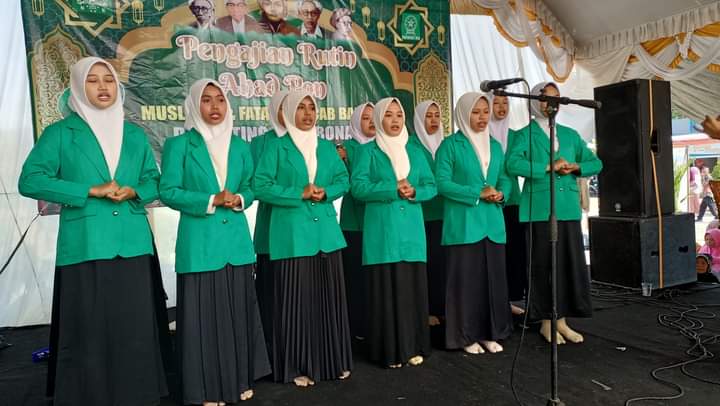 Jamaah Muslimat NU, Fatayat NU dan warga dari seluruh Desa Se Kecamatan Badegan hadir dalam acara Pengajian Rutin Ahad Pon di Paseban Banyutowo Desa Watubonang, Kecamatan Badegan Kabupaten Ponorogo Minggu 11 juni 2023.