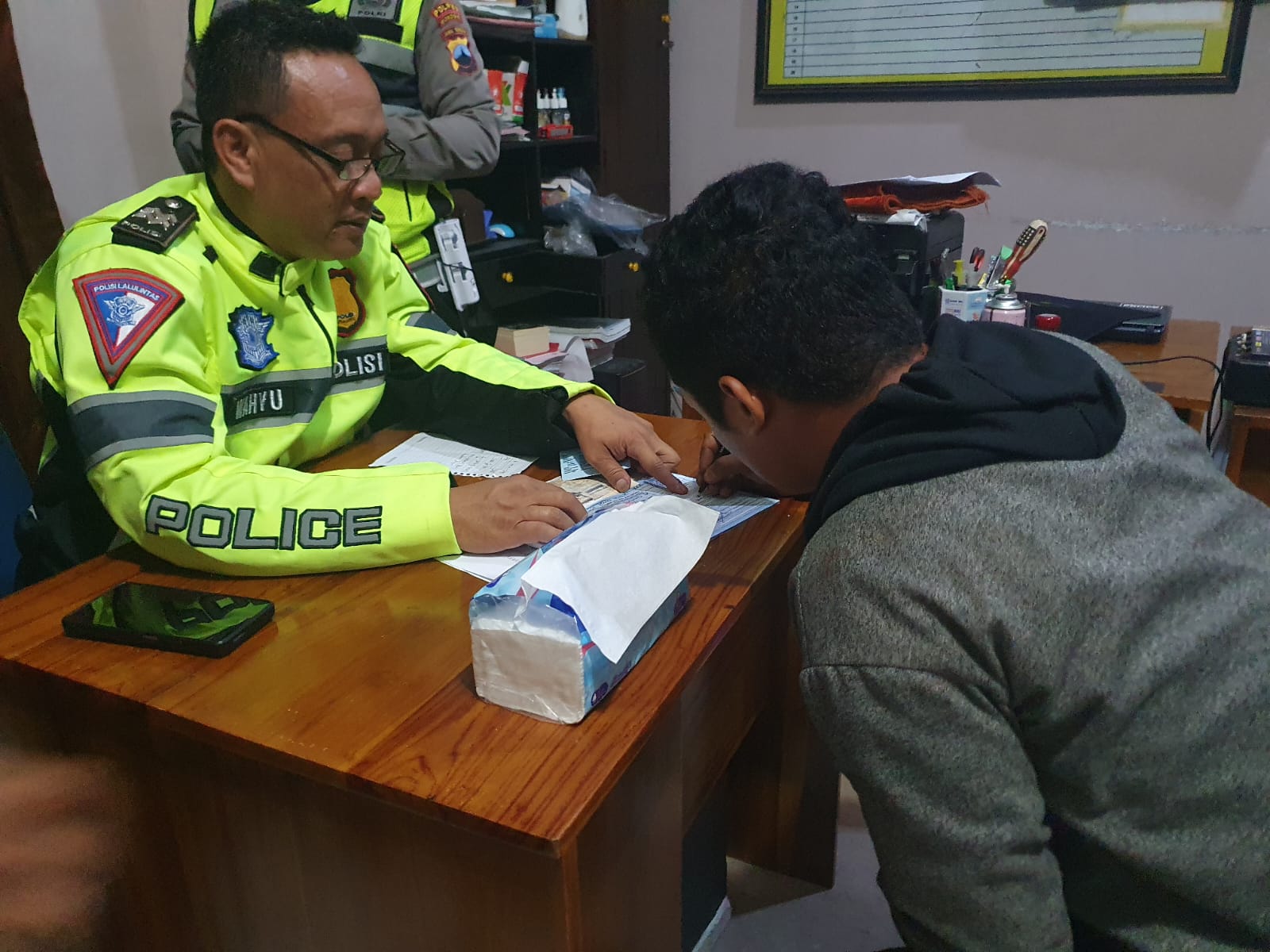 Kemudian dilakukan tindakan penilangan oleh sat lantas wonogiri dengan pasal berlapis melanggar pasal 281 jo pasal 77 ayat (1), pasal 288 ayat (1) Jo pasal 70 ayat (2), pasal 283 jo pasal 106 ayat (1), pasal 285 ayat (1) jo pasal 106 ayat (3), pasal 291 ayat (1) jo pasal 106 ayat (8).UULAJ No 22 tahun 2009 karena motornya tidak dilengkapi spion, tidak memiliki SIM dan menggunakan knalpot brong,” kata Anom. (Marsudi/Hms)