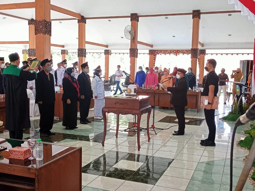 Bupati Situbondo Drs. H. Karna Suswandi, MM., didampingi Wabup Hj. Khoirani, S.Pd., MH., melakukan Pelantikan dan Pengambilan Sumpah Jabatan terhadap 56 Pejabat Pimpinan Tinggi Pratama dan Pejabat Administrasi di Lingkungan Pemkab Situbondo, bertempat di Aula Pendopo Kabupaten, Selasa (26/10/2021). Acara tersebut turut dihadiri jajaran Forkopimda, Ketua TP PKK Situbondo, jajaran OPD serta para pejabat yang dilantik.