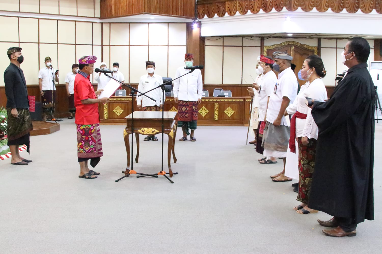 Gubernur Bali, Wayan Koster didampingi Wakil Gubernur Bali, Tjokorda Oka Artha Ardana Sukawati serta Sekretaris Daerah Provinsi Bali, Dewa Made Indra secara resmi melantik dan mengambil Sumpah/Janji Jabatan Pejabat Pimpinan Tinggi Pratama, Pejabat Adminstrator dan Pejabat Pengawas di Lingkungan Pemerintah Provinsi Bali, di Gedung Wiswasabha Utama, Kantor Gubernur Bali, Renon, Denpasar, Senin (Soma Wage Tambir) 3 Januari 2022.