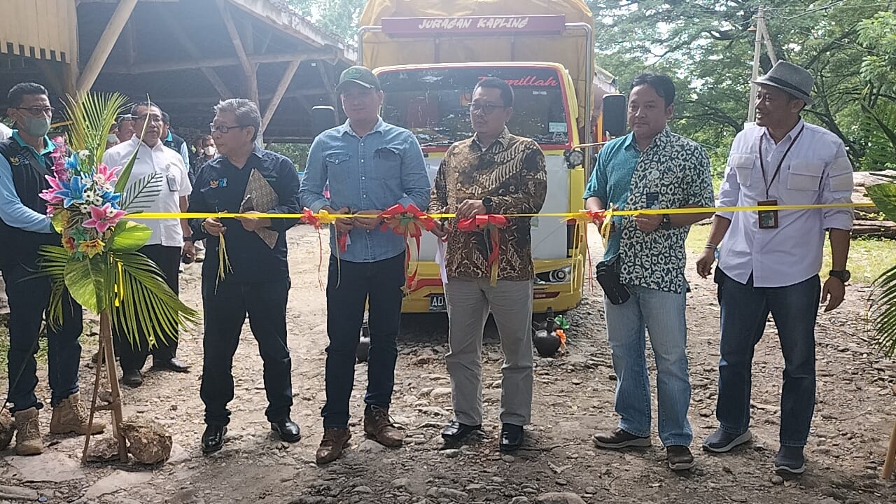 Dalam giat tersebut juga pemberangkatan perdana Truk pengiriman hasil biomassa ke PT.KMN Gresik dengan ditandai pemotongan pita dan pemecahan kendi.