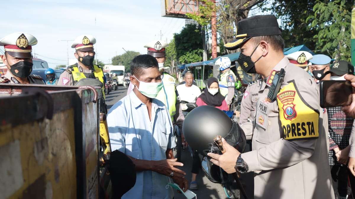 Kapolresta Sidoarjo Kombes Pol. Kusumo Wahyu Bintoro menyampaikan, bahwa pihaknya senantiasa peduli keselamatan para pengendara di jalan raya. Khususnya saat diketahui ada pengendara yang tidak mematuhi peraturan lalu lintas. Salah satunya tidak memakai helm.