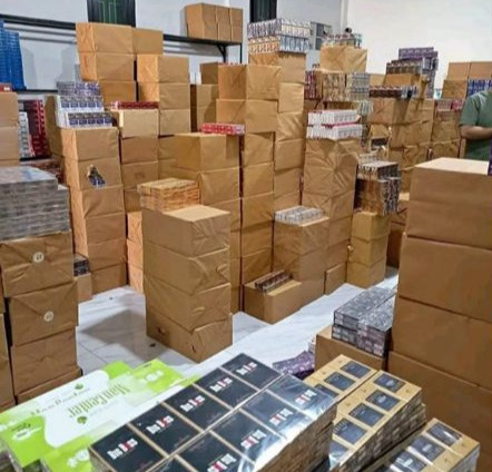 Dalam postingannya, akun @Zainudin Ahmad menampilkan tumpukan kardus berwarna coklat yang diduga berisi rokok ilegal. Dari tumpukan kardus itu ada beberapa yang sudah terbuka. Isinya rokok ilegal berbagai merek.