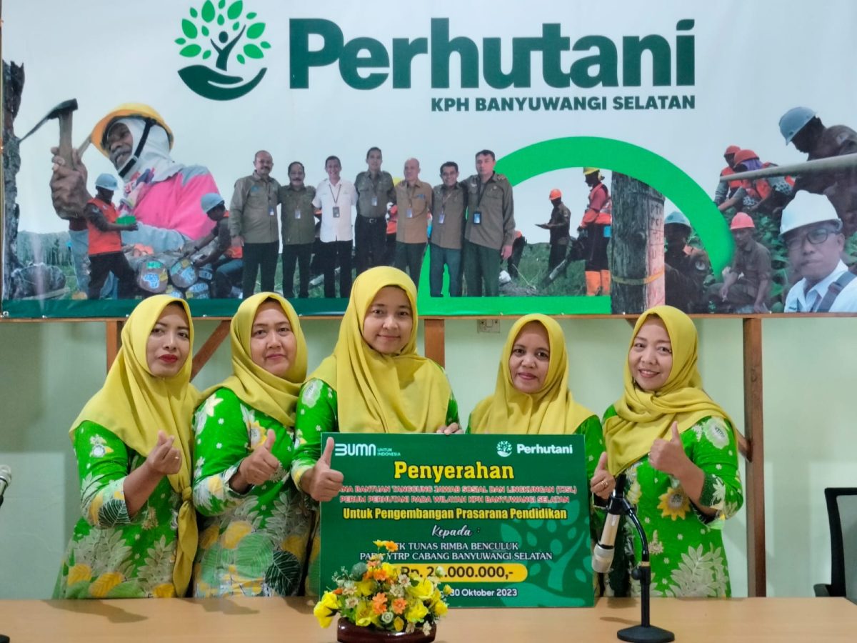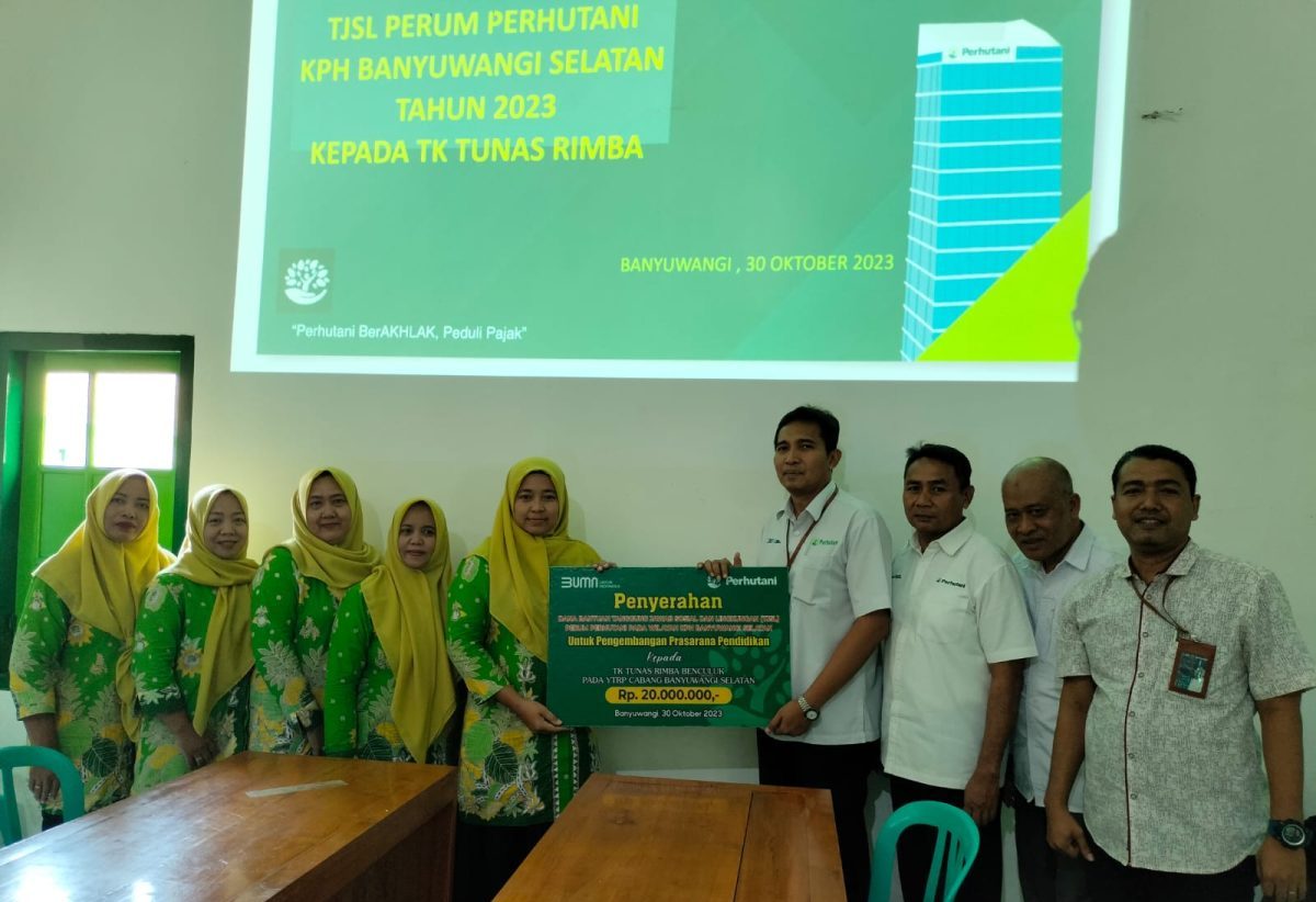 Sebagai bentuk Dukungan dan suksesi Program pemerintah untuk turut memberikan kemanfaatan bagi ekonomi, sosial, lingkungan serta hukum dan tata kelola masyarakat, Perum Perhutani melalui Perhutani Kesatuan Pemangkuan Hutan (KPH) Banyuwangi Selatan menyalurkan Dana bantuan Tanggung Jawab Sosial dan Lingkungan (TJSL) sebesar Rp.20 juta pada Pengembangan Prasarana Pendidikan pada Wilayah KPH Banyuwangi Selatan di Kantor Perhutani KPH Banyuwangi Selatan pada Rabu (1/11/2023).