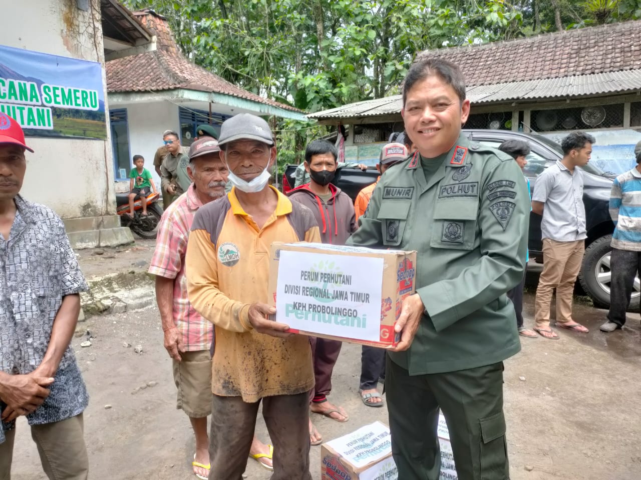 Perhutani Kesatuan Pemangku Hutan (KPH) Probolinggo memberikan bantuan sembako kepada warga terdampak erupsi semeru di Desa Supiturang, Desa Sumberurip Lumajang sebanyak 271 orang, Senin ( 05/12).