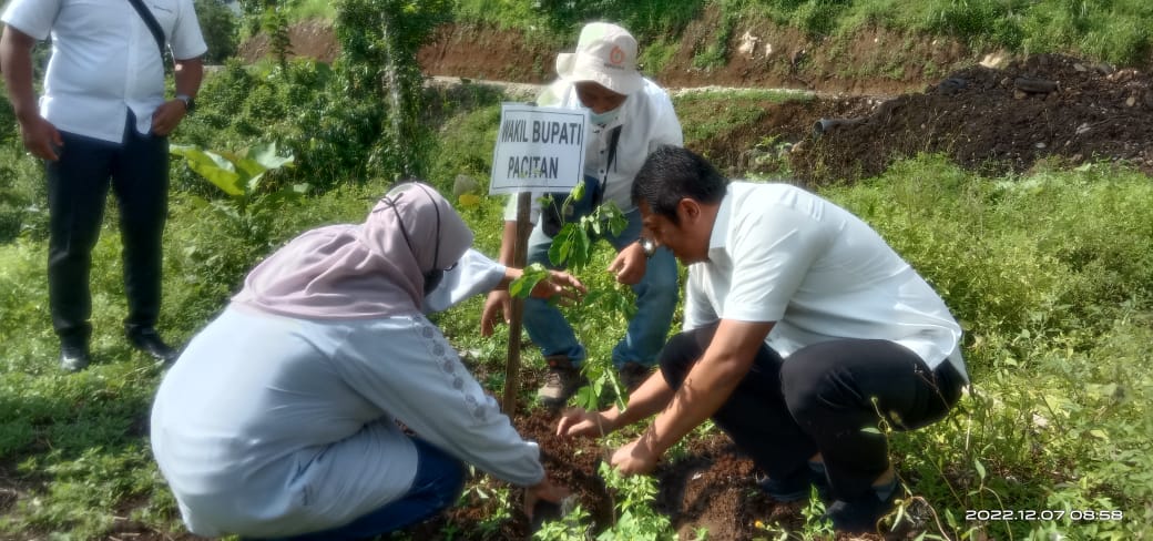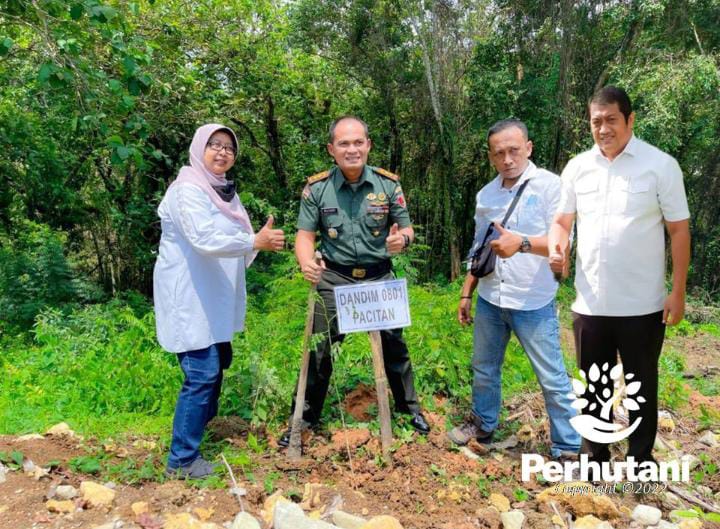 Perhutani Kesatuan Pemangkuan Hutan (KPH) Lawu Ds, bersama Wakil Bupati Pacitan, Gagarin dan Komandan Kodim 0801 Pacitan, Letkol Inf. Roliyanto, melakukan penanaman pohon jenis Trembesi dengan jumlah 100 pohon di lokasi obyek wisata Mentari Hill. Rabu (07/12/2022).