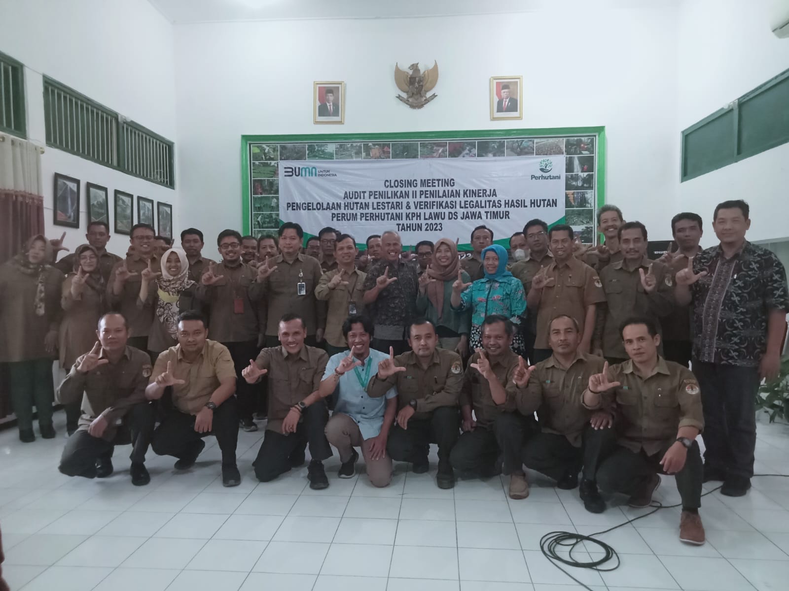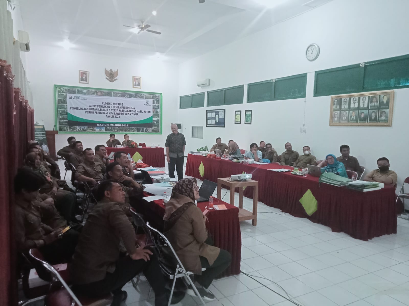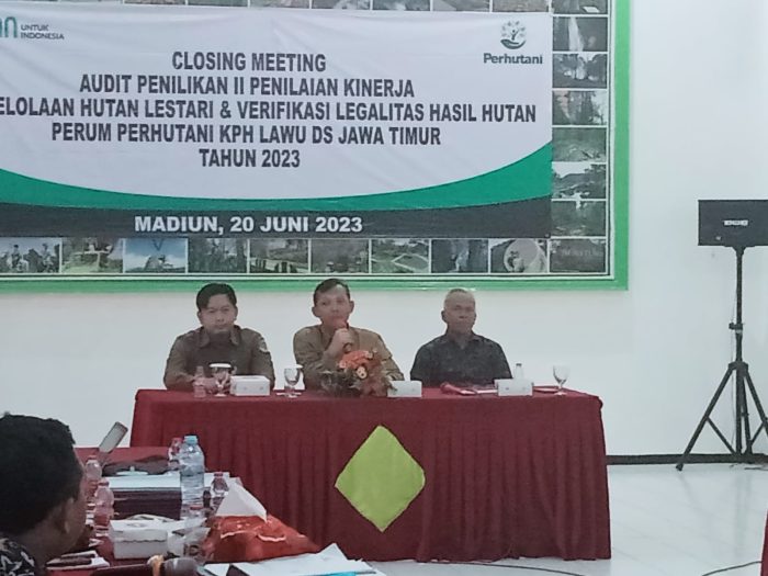 Perhutani Kesatuan Pemangkuan Hutan (KPH) Lawu Ds menggelar closing meeting penilaian kinerja Pengelolaan Hutan Produksi Lestari (PHPL) bersama PT Equality Indonesia, bertempat di Ruang Rapat Gunung Lawu, pada Selasa (20/06/2023).