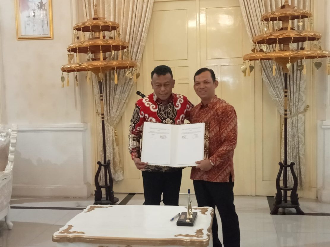 Perhutani Kesatuan Pemangkuan Hutan (KPH) Lawu Ds melaksanakan penandatanganan Perjanjian Kerjasama (PKS) Penggunaan Kawasan Hutan dengan Bupati Ponorogo dalam rangka Penggunaan Kawasan Hutan untuk pemukiman warga terdampak tanah gerak di Desa Tumpuk Kecamatan Sawoo Kabupaten Ponorogo bertempat di Rumah Dinas Bupati Ponorogo (Pringgitan), Kamis (7/12/2023).