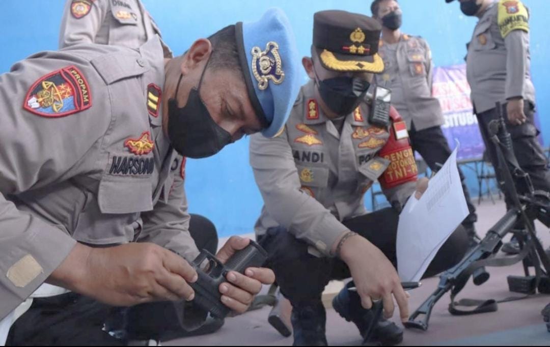 Kapolres Situbondo, AKBP Dr. Andi Sinjaya, S.H., S.I.K., M.H, melakukan pemeriksaan senjata api (Senpi) baik laras panjang maupun laras pendek yang digunakan ataupun inventaris di Polres dan Polsek jajaran. Pemeriksaan dan evaluasi penggunaan senjata api itu, dilakukan di Gedung Indoor Polres Situbondo, Selasa Kemarin (01/02/2022)