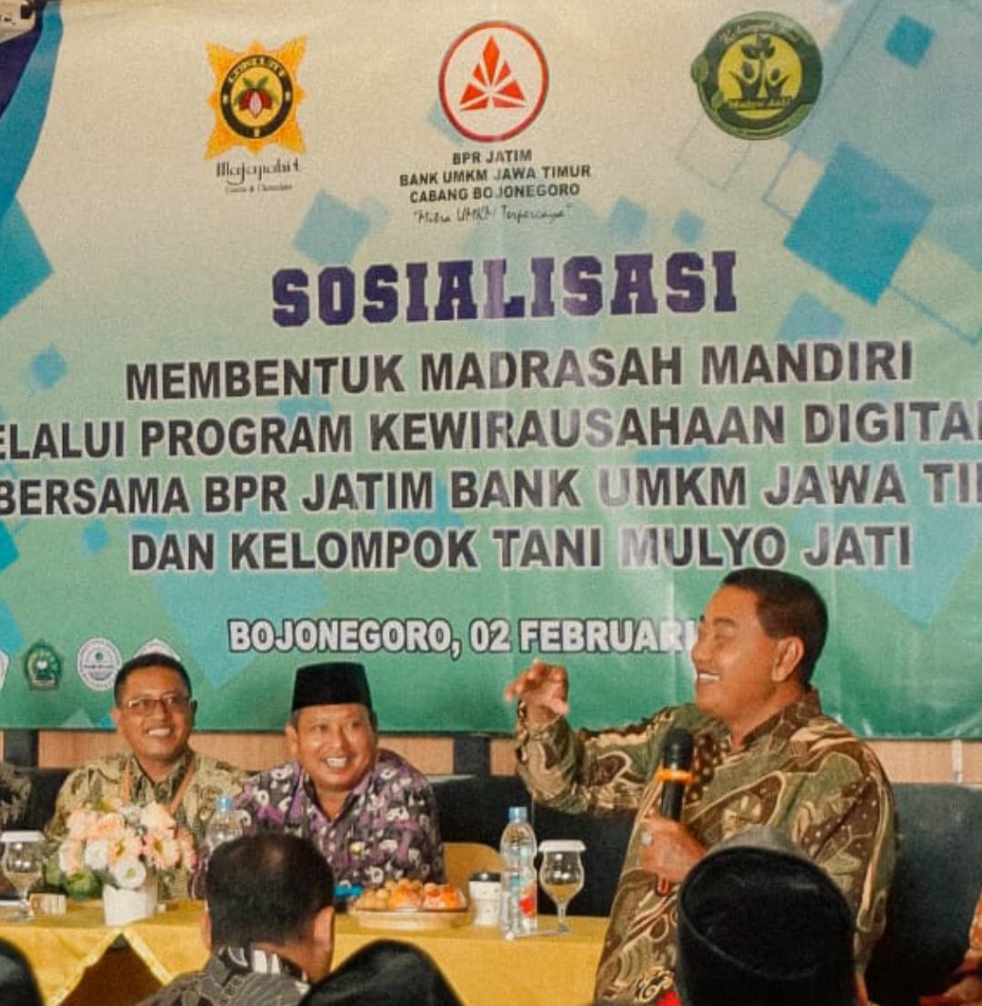 Dan Kerja Kewirausahaan itu pun telah Disosialisasikan dalam upaya membentuk Madrasah Mandiri Melalui Program digital bersama BPR Jatim Bank UMKM Jawa Timur dan Kelompok Tani Mulyo Jati Mojopahit di Bojonegoro, Kamis, 02 Pebruari 2023 yang langsung dihadiri oleh Kepala Kemenag Bojonegoro H. Munir, M. Ag dan Ketua Kelompok Tani Mulyo Jati Mojopahit Ki Mulyono SH MM dan Pihak dari BPR Jatim Bank UMKM Jawa Timur.