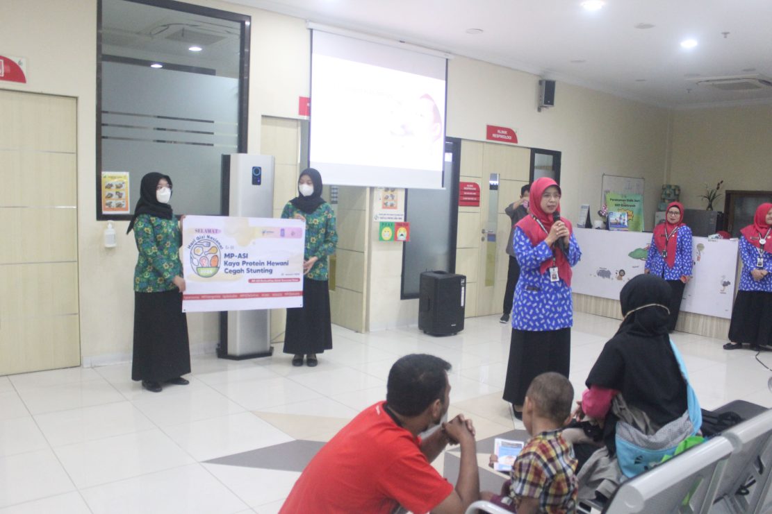 Penyuluhan kesehatan dengan tema tersebut dilaksanakan di ruang rawat inap anak, poliklinik tumbuh kembang anak, dan ruang rawat bersalin, diikuti oleh para pasien dan keluarga pasien. Tujuan kegiatan terfokus untuk mendukung program nasional dalam mencegah stunting, dengan kegiatan berupa sosialisasi tema hari gizi kepada para pasien dan keluarga pasien.