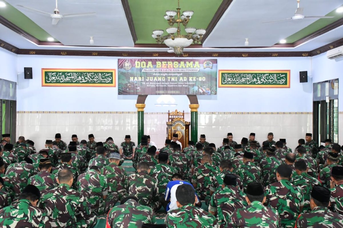 Dalam rangka memperingati Hari Juang Tentara Nasional Indonesia Angkatan Darat (TNI AD), Kodim 0802/Ponorogo meggelar beberapa rangkaian kegiatan salah satunya doa bersama, Jumat (12/12/2025).