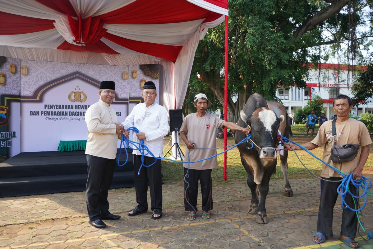 “Untuk jajaran Polda Jateng secara keseluruhan melakukan penyembelihan terhadap 176 ekor sapi dan kerbau dan 215 ekor kambing yang proses penyembelihan dan distribusinya tersebar di seluruh polres jajaran Polda Jateng,” ungkapnya.