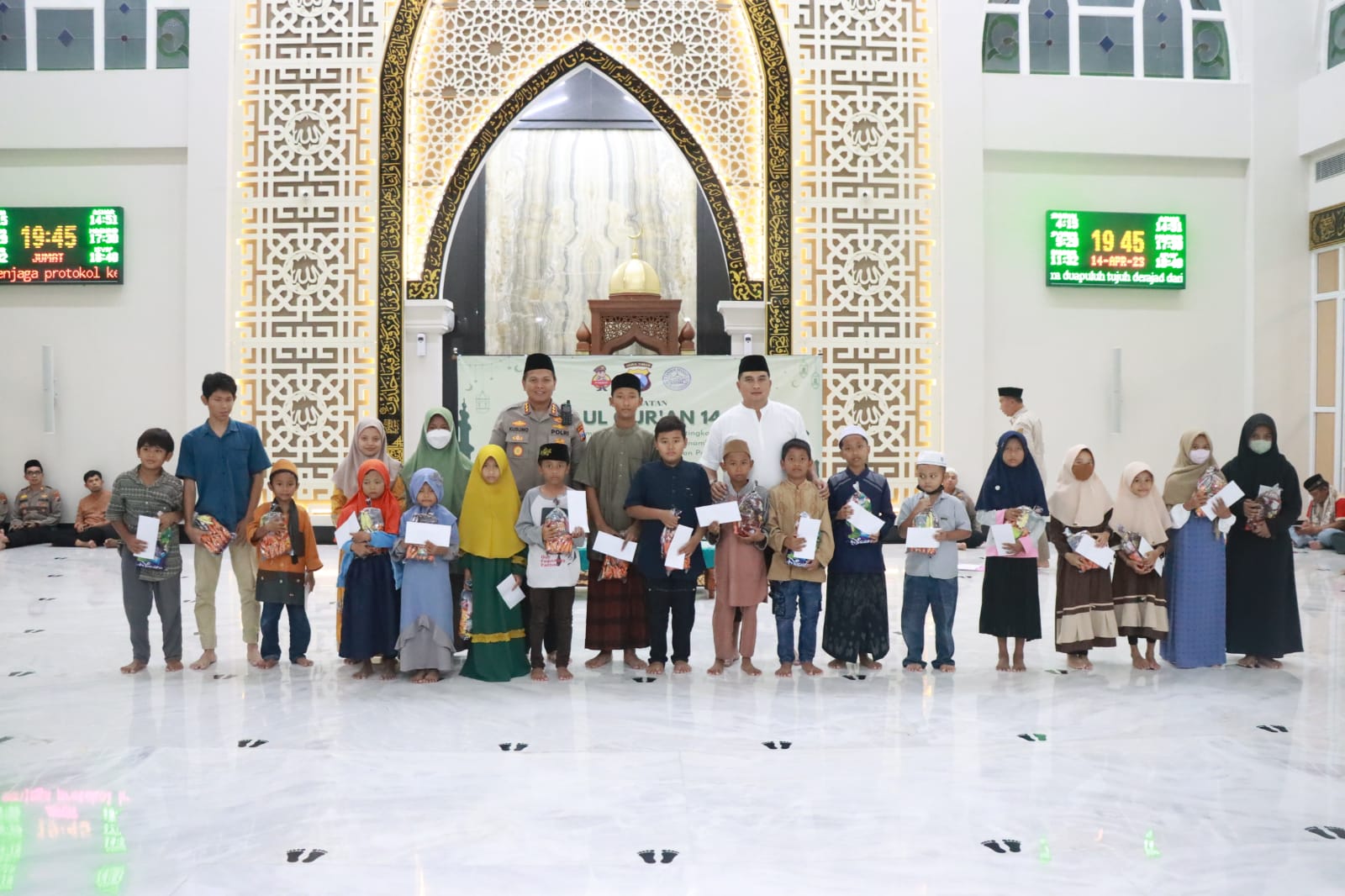 Dalam memperingati Nuzulul Quran, Polresta Sidoarjo menggelar pengajian dan santunan anak yatim piatu di Masjid Al Ikhlas, Jalan Raya Cemengkalang, Jumat (14/4/2023) malam.