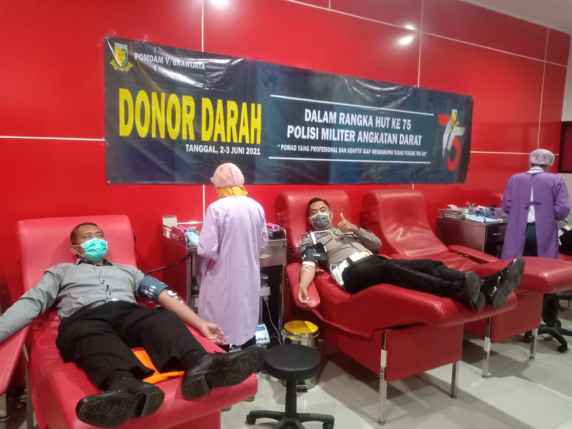 Puluhan anggota Propam Polresta Sidoarjo dan jajaran, ikut mendonorkan darahnya dalam giat bakti sosial memperingati HUT ke – 75 Polisi Militer Angkatan Darat, di UTD PMI Kabupaten Sidoarjo, 2-3 Juni 2021.